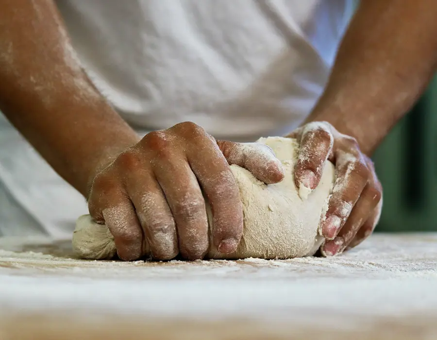 Beste Zutaten, deren sorgfältige Vorbereitung und sehr viel Fachwissen sind Voraussetzung, damit der Teig perfekt gelingt. Danach haben unsere Teige erstmal ganz viel Zeit um sich richtig zu entwickeln. Dann werden die Teigstücke mit viel Handwerklichem Geschick gewirkt und in Form gebracht. Nach einer weiteren Ruhepause und einer entsprechenden Garzeit kommen die Teigstücke in den richtigen Ofen und werden ausgebacken.